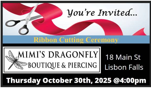 You're Invited! Join the Town of Lisbon for Mimi’s Dragonfly Boutique & Piercing’s Ribbon Cutting Ceremony on Thursday, October 30th at 4:00 PM.